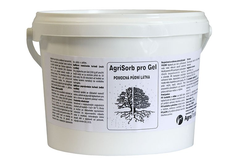 Práškový koncentrát určený na přípravu ochranného kořenového hydrogelu, který chrání kořeny rostlin před zaschnutím při přesazování, přepravě a skladování. Podporuje zdravý a intenzivní rozvoj kořenového systému. Výrazně snižuje podíl sazenic a přísad, které v důsledku přesazování odumírají. Po ošetření kořenů rostlin a následném vysázení přípravek urychlí kontakt s okolní půdou a tím se zabezpečí překonání přesazovacího šoku. Gel vytvořený z 1 g přípravku je schopný vázat až 300 g vody. Je použitelný při výsadbě jehličnanů a listnáčů v lesním hospodářství, při výsadbě ovocných stromků, sazenic révy vinné, chmele a drobného ovoce, při skladování sazenic stromků a keřů ve školkách po vyzvednutí, při vysazování sazenic zeleniny a květin.Agrisorb pro Gel se používá jako 0,8–1% roztok (80–100 g/10 l vody). Prášek postupně sypte za stálého míchání do vody.Úplného zbobtnání se dosáhne po 30 minutách až hodině. Správná konzistence roztoku je, když gel neodkapává z namočených kořenů.Agrisorb pro Gel aplikace přípravku:• Máčení - kořeny sazenic buď jednotlivě nebo ve svazcích namočte do připraveného gelu, nechte odkapata proveďte výsadbu.• Použití prášku - prášek se nasype na dno vykopané jamky, zalije se vodou a provede se výsadba• Zaprašování - kořeny ovocných stromů po jejich vyzdvihnutí ze země před expedicí mírně ovlhčete vodní mlhou, poprašte Agrisorbem a opět jemným zmlžením postříkejte, přičemž nesmyjte vytvořený gel! Na kořenovém systému se vytvoří gel, který ho bude chránit před vyschnutím a po výsadbě urychlí jeho spojení s okolní půdou