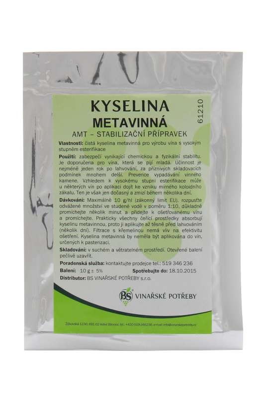 Výhody registraceK zabezpečení vynikající chemické a fyzikální stability. Je doporučena pro vína, která se pijí mladá. Účinnost je nejméně jeden rok po lahvování, za příznivých skladovacích podmínek mnohem delší. Prevence vypadávání vinného kamene. Vzhledem k vysokému stupni esterifikace může u některých vín po aplikaci dojít ke vzniku mírného koloidního zákalu. Ten je však jen dočasný a zmizí během několika dní.