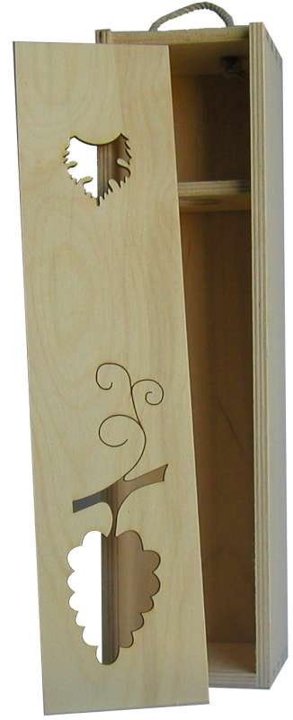 Dřevěná kazeta na 1 láhev (nízká, dřevěné čelo s výřezem hroznu) - doprodej