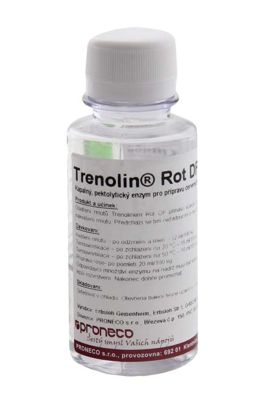 PRODUKT A ÚČINEK Trenolin® Rot DF je snadno použitelný, pektolytický enzym, který způsobuje rychlé uvolnění barviv a zcela zásadně zkracuje macerační dobu nutnou k uvolnění těchto látek. Tím se předchází nežádoucím a nepříznivým účinkům oxidace. Trenolin® Rot DF je enzym vyčištěný speciální metodou. Rušivé vedlejší aktivity jako depsidáza a oxidáza jsou odstraněny a tím se podpoří typická, odrůdová svěžest vín.