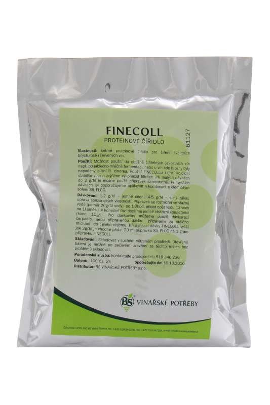 Výhody registraceSnadno a rychle použitelný čiřící a krášlící prostředek pro čiření kvalitních bílých, rosé i červených vín. Možnost použití do obtížně čiřitelných jakostních vín např. po jablečno-mléčné fermentaci, nebo u vín kde hrozny byly napadeny plísní B. cinerea. Použití FINECOLLu zajistí koloidní stabilitu vína a zvýšíme výkonnost filtrace. Při malých dávkách do 2 g/hl je možné použít přípravek samostatně. Při vyšších dávkách doporučujeme aplikovat s křemičitým solem SIL FLOC. Dávkování: 1-2 g/hl – jemné čiření, 4-5 g/hl – silný zákal, úprava senzorických vlastností.