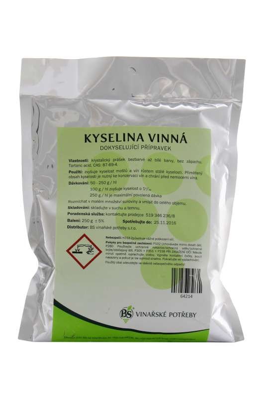 Činidlo upravující kyselost. Zvyšuje kyselost moštů a vín růstem stálé kyselosti. Přiměřený obsah kyselosti je nutný ke konzervaci vín a chrání před nemocemi vína. Dávkování: 50 - 250 g / hl, 100 g / hl zvyšuje kyselost o 1 promile, 250 g / hl je maximální povolená dávka.