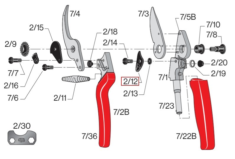 Pojistka 2/12 FELCO proti otevření nůžek (na č.2,6,7,8,11)