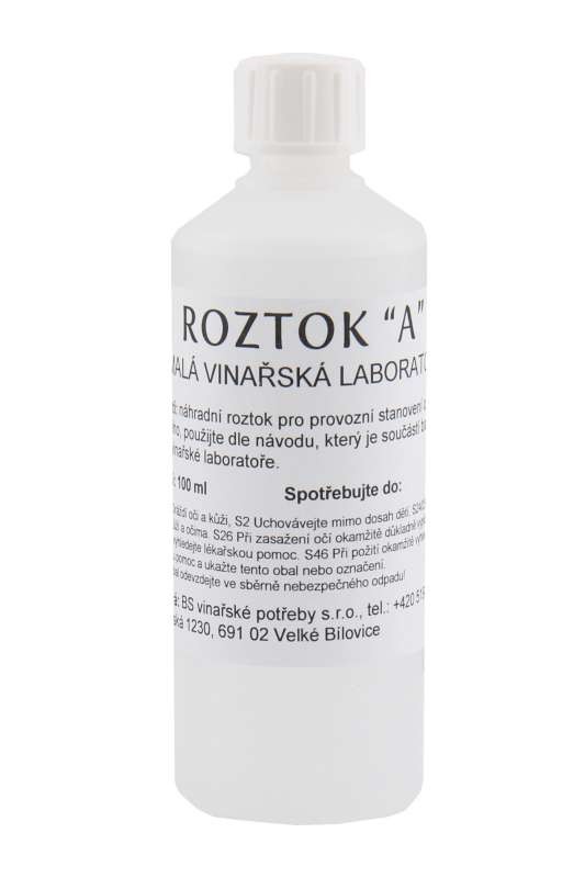 Roztok A - určen spolu s roztokem B ke stanovení volné SO2 ve víně.