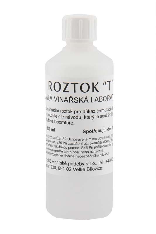 Roztok T - určen k důkazu přítomnosti termolabilních bílkovin ve víně.