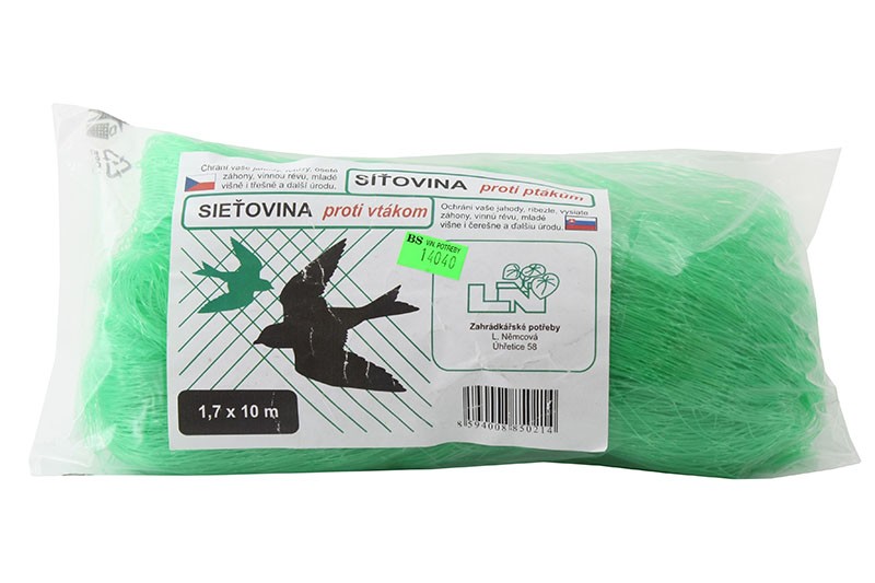 Výhody registraceSíť ochranná určená proti ptákům je vyrobena z polyetylenové síťky, zelené barvy. Velikost ok je 2,5 x 2,5 cm. Používá se na ochranu bobulovin, peckovin, jahod, révy vinné a jiných plodin často napadaných ptactvem. Po sklizni je možné síť sejmout a znovu použít. Rozměry sítě šířka 1,7m délka 10 m.