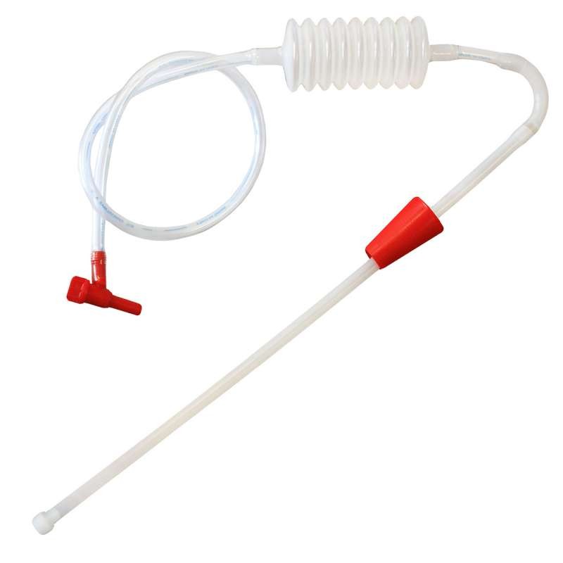Samospádové zařízení určené k přečerpávání tekutin, je vybaveno mechanismem, který napomáhá snadnému nasátí tekutiny, ukončeno plastovým ventilem.