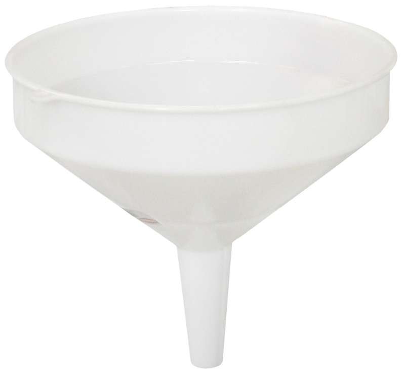 Trychtýř z odolného plastu, barva bílá, horní průměr 30 cm.