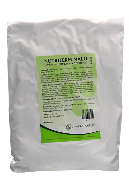 Výhody registracePoužití: Použití NUTRIFERM ML je doporučeno promalolaktické kvašení v obtížných vínech. Je zvláště bohatý na polysacharidy,aminokyseliny, doplňky a vitamíny. Zvyšuje přítomnost živin ve víně, stimulujerůst bakterií a zlepšuje jejich množení. Obsahuje celulózu, která absorbujelátky nebo směsi látek toxických pro bakterie NUTRIFERM ML efektivně zajišťujenadvládu naočkovaných bakterií a zároveň výrazně redukuje délku MLF procesu.